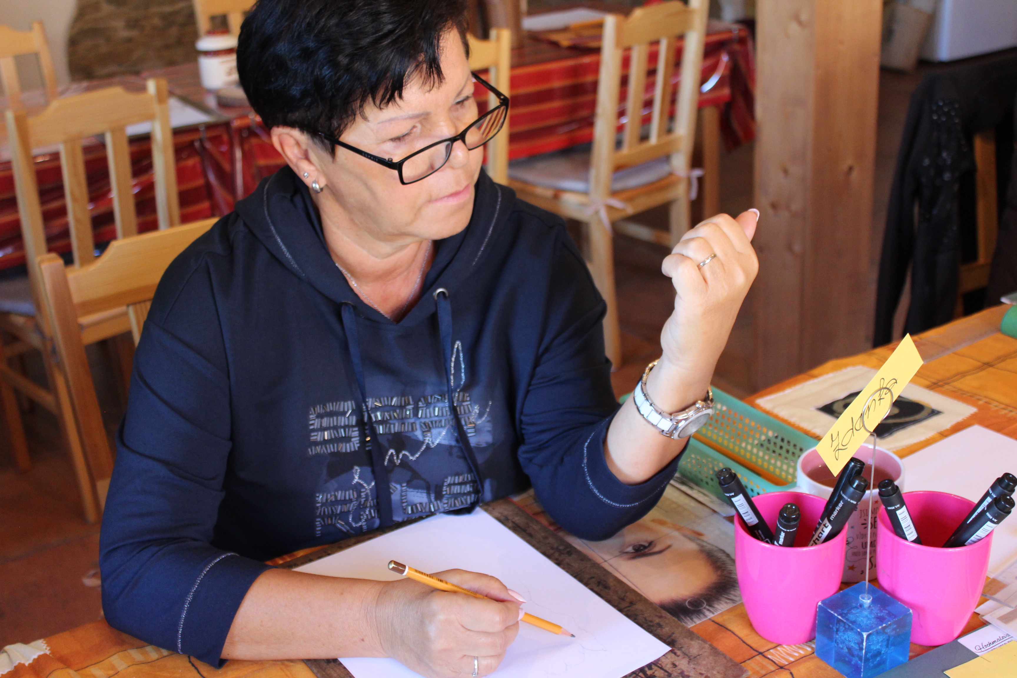 Prostředí a fota z pobytových kurzů - kreslení pravou hemisférou TUŽKA